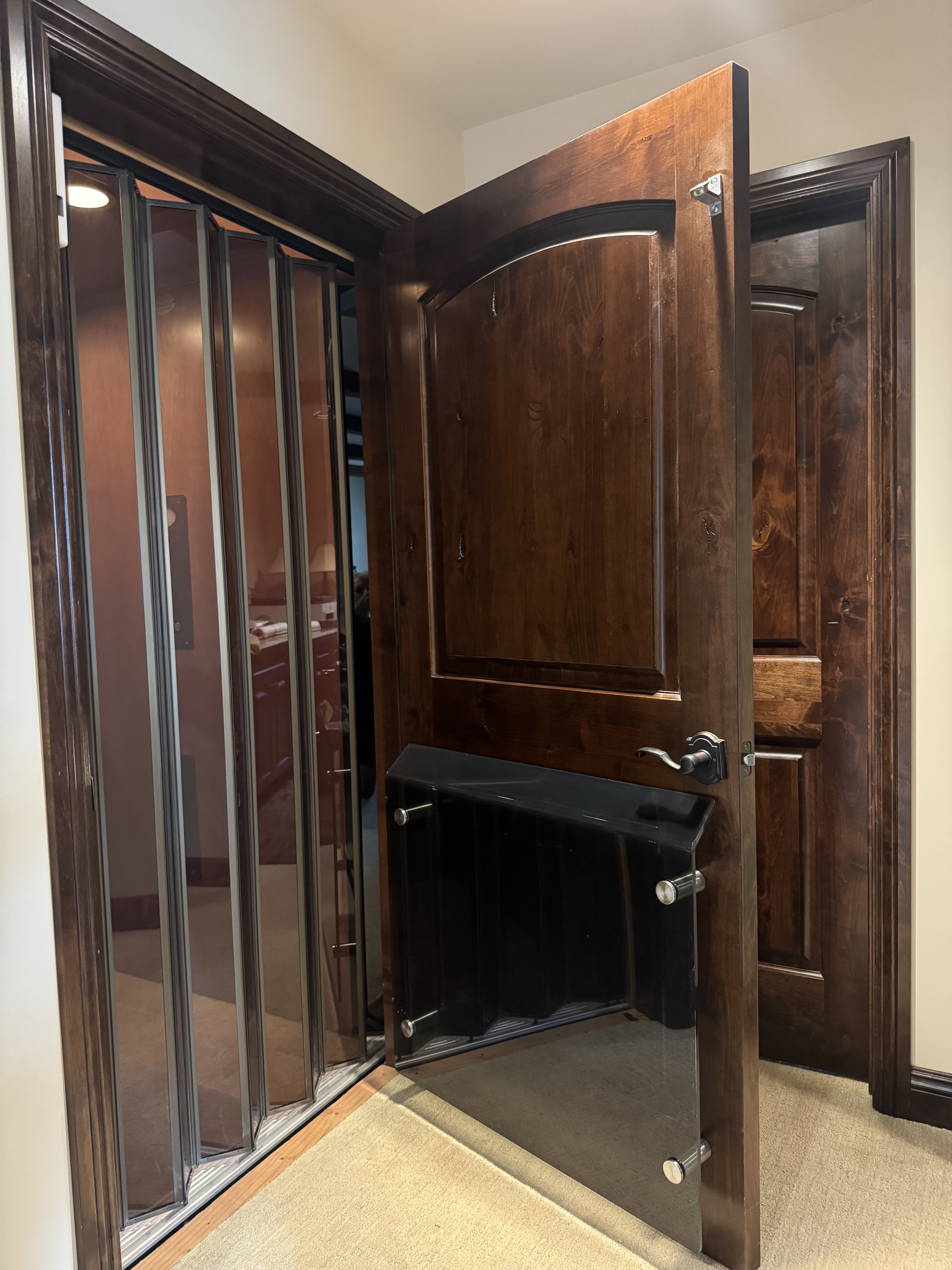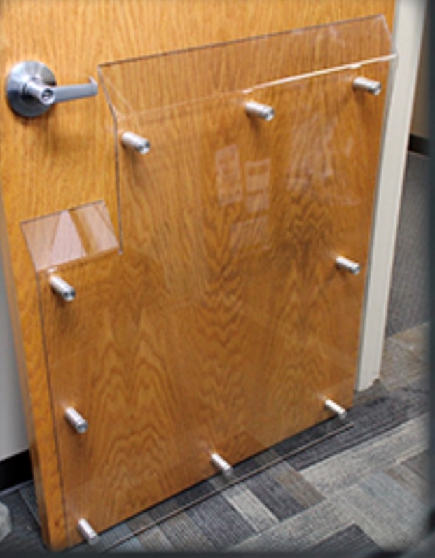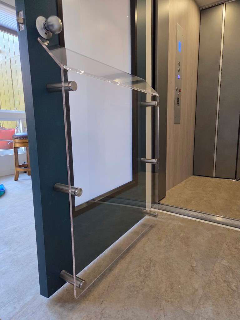 Explore recent elevator guard installations featuring CNC-cut clear acrylic door baffles and space guards.